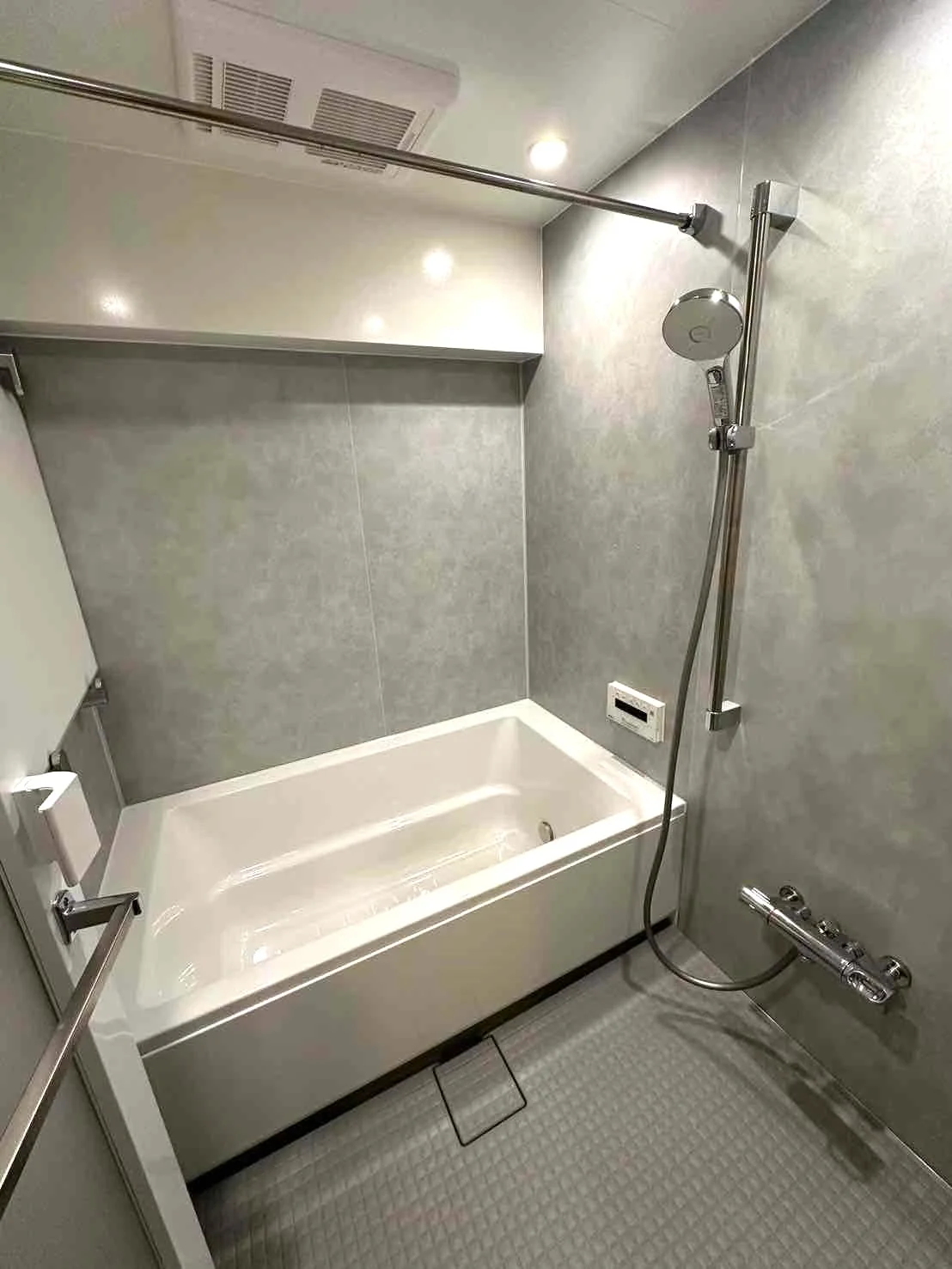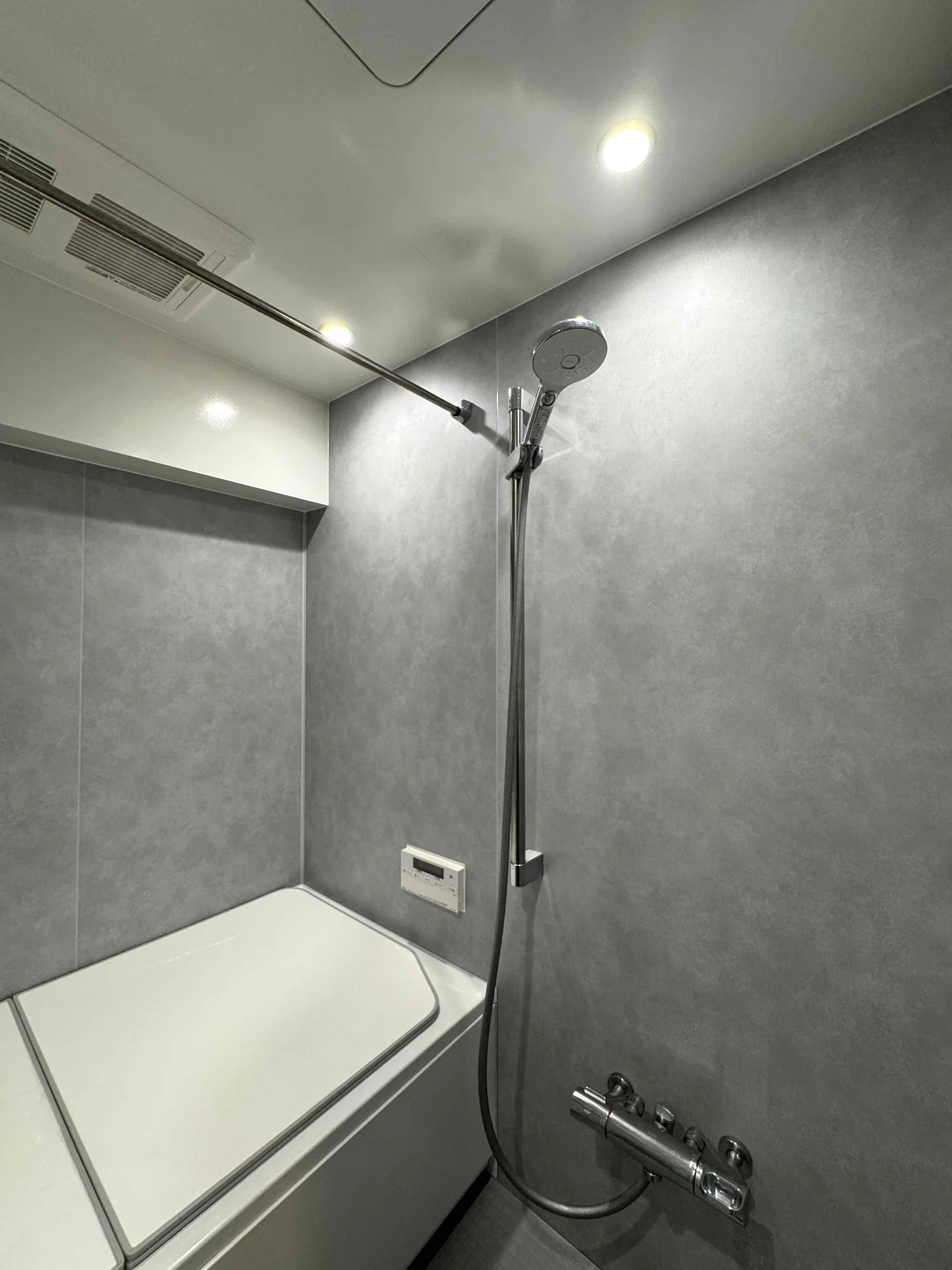 汚れの目立ちにくさと落ち着いたバスタイムが過ごせるようグレーを基調に仕様を選んでいきました。