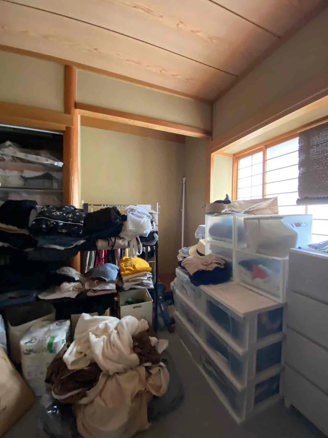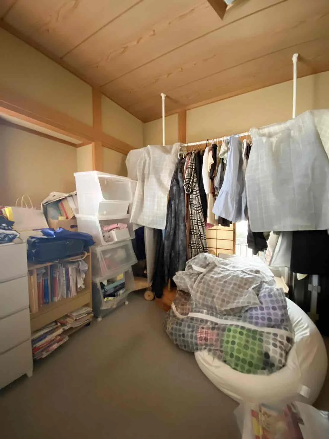 現状物置のようになっているところを奥様の寝室にしたい。床の間からクローゼットに変えられないか。部屋干しスペースが欲しい。