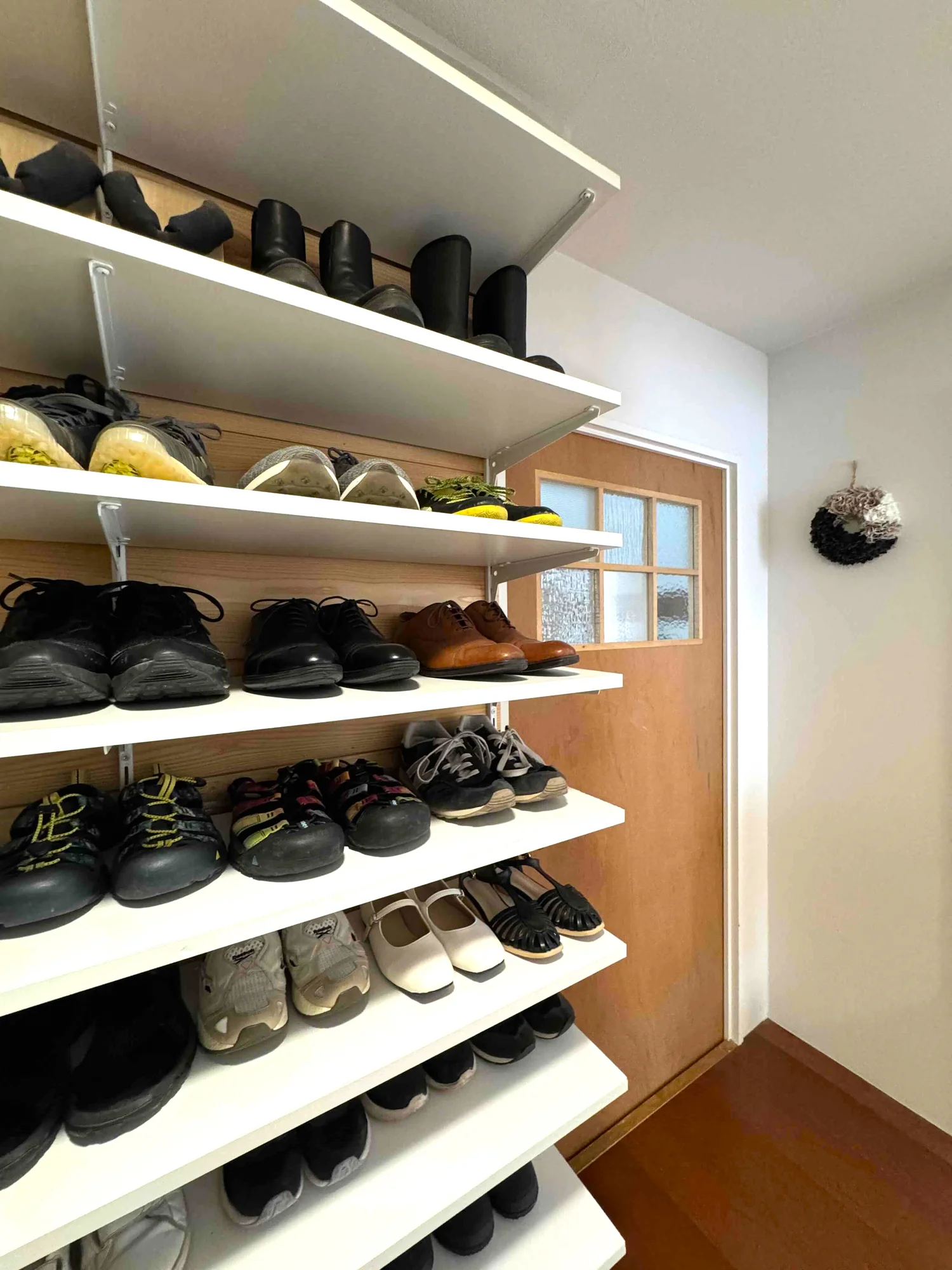 家族がそれぞれ自分で靴を取り出しやすくなったこともあり、玄関が散らかりにくくなりました。