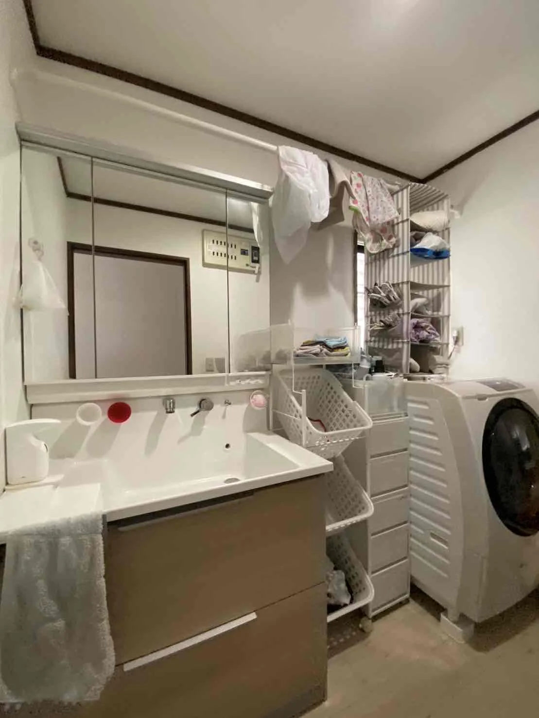 洗面下に無印のラタンボックスを入れられるようにしたい。